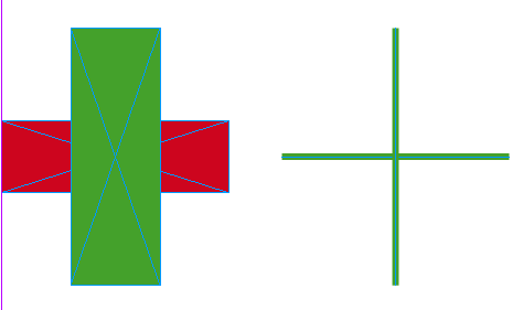 Pour le cas de la croix, il faut avoir 2 rectangles sélectionnés :Figure: Convertir 2 rectangles en 2 traits avec des contours