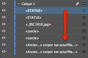 - Ordre de superposition dans un calque.On sélectionne l'élément dans le calque et on le fait glisser par dessus ou par dessous un élemént.