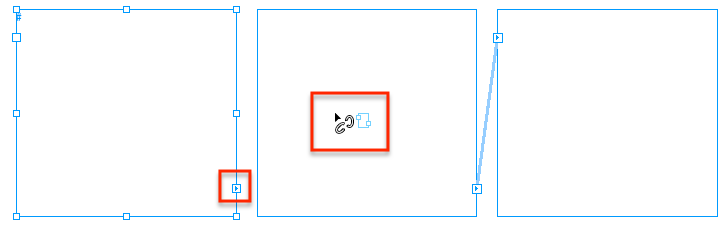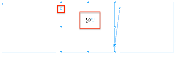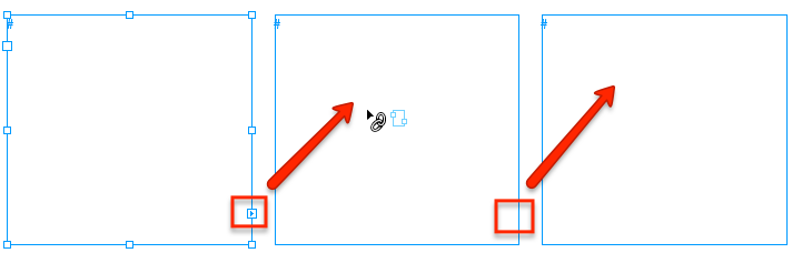 - Chaîner des blocs vides avant importation de texte.Sélectionner le premier bloc. Faire un clic sur le signe de débordement (+) puis cliquer dans le bloc suivant. Répéter l'opération.