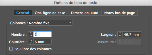 - Bloc multicolonne.Sélectionner le bloc de texte puis aller dans le menu Objet → Option de bloc de texte. Il ne peut que s’agir d’un bloc contenant du texte.