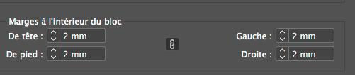 Note: Par défaut le nombre des colonnes est fixe. La largeur des colonnes s’adapte avec son nombre et la largeur de la gouttière. Si Largeur de colonne fixe est cochée, l’augmentation de la gouttière entraînera une augmentation de la largeur du bloc. Un redimensionnement du bloc entraînera une modification du nombre de colonnes. - Marges intérieures.Dans le même menu on retrouve les marges intérieures. L’espacement d’encart est un retrait intérieur au bloc qui délimite le texte.
