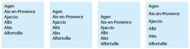 - Justification verticale.La justification verticale définit la position verticale du texte dans le bloc. En haut, le texte est calé contre l’encart du haut. Centré, il se centre entre les encarts. En bas, il se cale sur l’encart du bas et justifié, il occupe tout l’espace vertical où la première ligne et la dernière sont calées sur les encarts du haut et du bas. L’interligne est donc modifié sauf si on corrige la « limite d’espacement des paragraphes ».