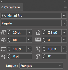 Choisir le nom de la famille de police (Myriad Pro) et son style (regular).