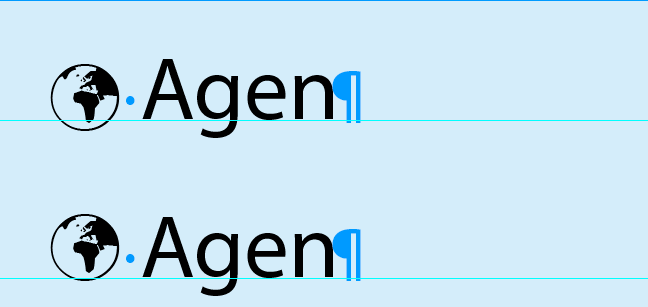 Figure: Le glyphe est surélevé de 1pt dans la 2e ligne